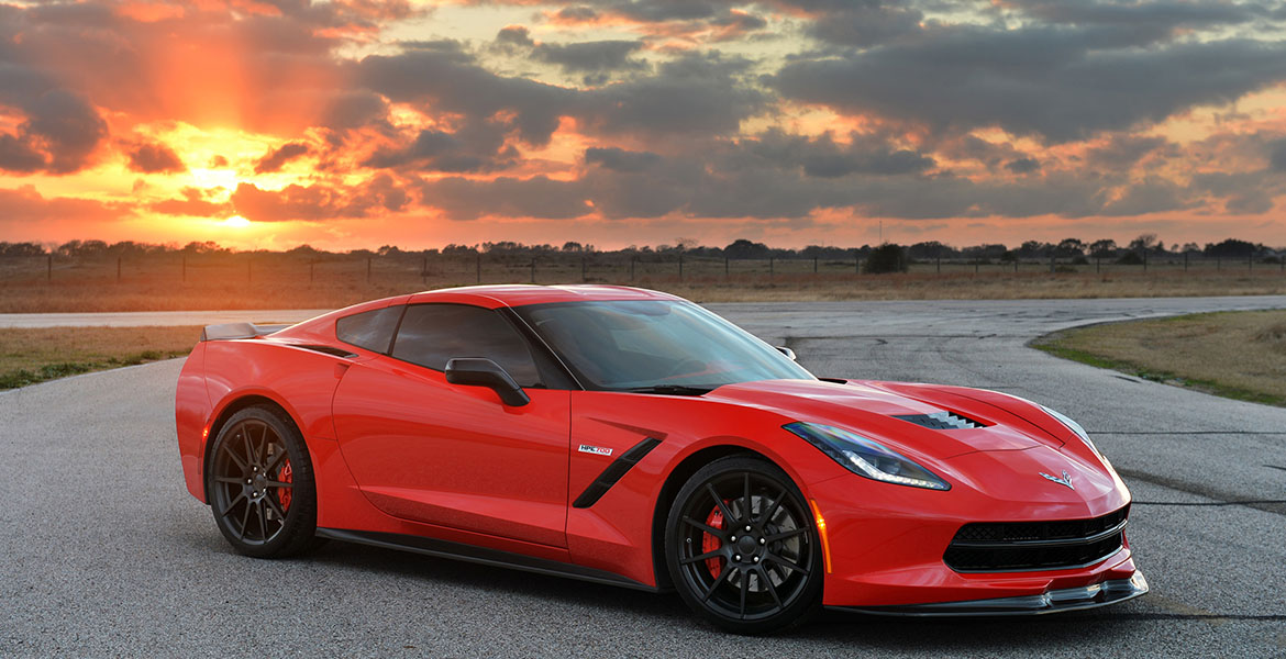 The standard features of the Chevrolet Corvette Stingray include 6.2L V-8 455hp engine, 7-speed manual transmission with overdrive, 4-wheel anti-lock brakes (ABS), side seat mounted airbags, airbag occupancy sensor, automatic air conditioning, 18" aluminum wheels, cruise control, ABS and driveline traction control, Active Handling electronic stability, 6 way power driver seat.